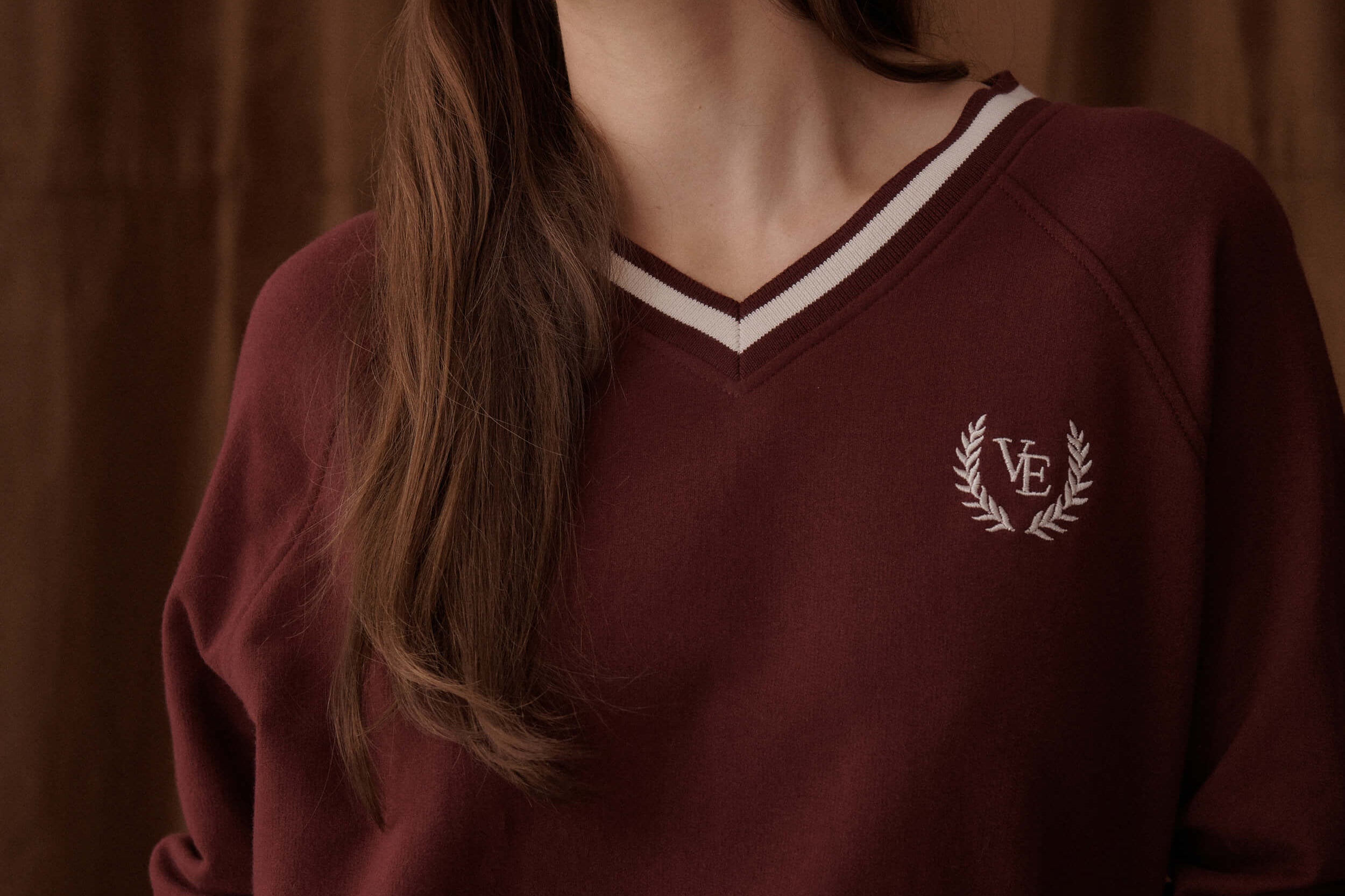 Ascott French Terry V Neck - Deep Cherry