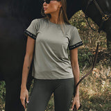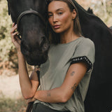 Introducing the new VALA Equestrian Training T Shirt in Clover. It features branded elastic armbands adding a contemporary edge to the minimal silhouette, for an elevated look that's both modern and sporty.